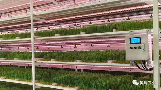 ??光照系統,為保證牧草正常的一個光合作用,每層都設有兩組植物補光燈,為牧草提供光照,可作定時開關管理,實現了自動化光照管理。