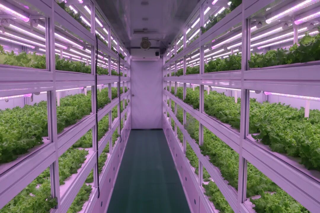針對瑙魯的特殊國情,奧瑪農業摒棄傳統種植模式,量身打造了集裝箱植物工廠這一 “農業黑科技”,將人工光植物工廠技術與瑙魯的環境需求深度適配,打造出無需依賴土壤、不受氣候限制的標準化蔬菜生產體系。這款集裝箱植物工廠以標準集裝箱為載體,完美適配瑙魯土地資源緊張的現狀,多層立體栽培設計將空間利用率拉滿,小小集裝箱的蔬菜產能堪比數畝傳統農田;內部搭載智能光照系統,通過定制化 LED 光譜模擬植物生長所需陽光,搭配精準溫控、濕度調節設備,徹底擺脫了當地高溫、暴雨的天氣影響,為蔬菜生長打造恒溫恒濕的穩定環境。